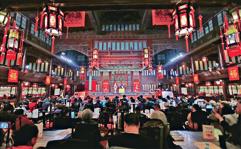 位于天津市南开区的广东会馆,建成于1907年,承载着丰厚的文化底蕴和历史记忆,被曹禺称为“一部活的中国戏剧史”。2020年7月,广东会馆启动修缮工程,历时一年多进行了整体维修和科学保护,更好地架起现代与传统的桥梁。如今,京剧、相声、舞狮等在广东会馆定期上演,给古建筑增添文化活力,为游客带来文旅新体验。图为2024年春节期间广东会馆京剧演出现场。 天津市委宣传部供图 姚文生/摄