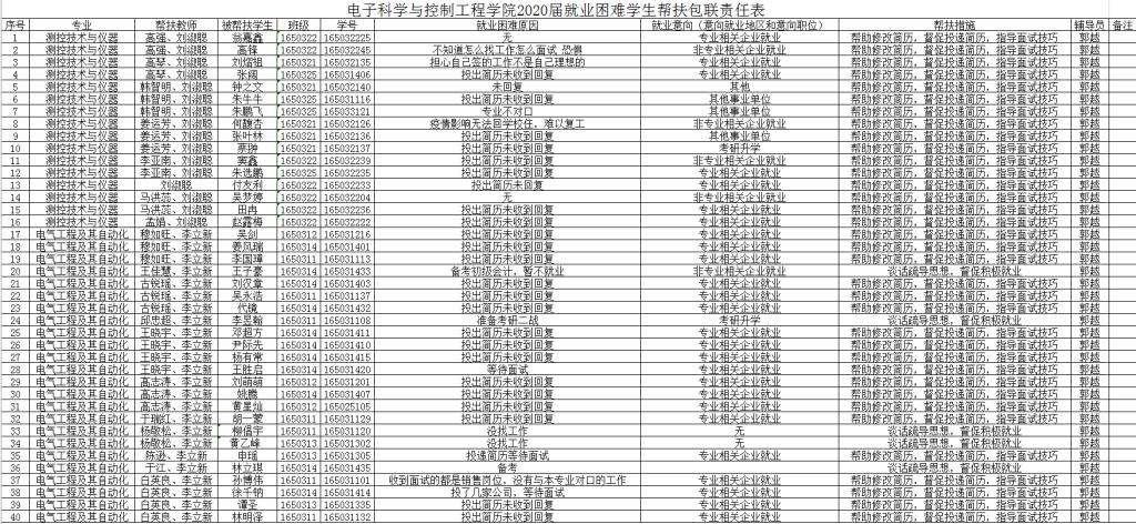 电气工程及其自动化专业教研室325日通过毕业生钉钉群对未就业学生的具体原因和面临的现实困难进行了详细调查。326日召开专业全体教师钉钉视频会议,电气专业全体毕业设计指导教师共19人参加了会议,会议传达了学院就业工作领导小组会议精神和《电子科学与控制工程学院2020年就业工作实施方案》,介绍了电气专业毕业生的就业现状,动员全体指导老师帮助学生梳理就业方向,指导简历设计和面试技巧。331日,依据毕业设计安排对学生实际就业现状进行了再次摸底调查,确定了就业困难人员,并有针对性的制定了帮扶计划,明确了一对一的包联责任老师。49日再次召开全体毕设指导老师钉钉视频会议,跟进未就业学生的帮扶计划,更新就业数据,对学生就业帮扶过程中的遇到的困难和问题共同商讨研究了解决方案。