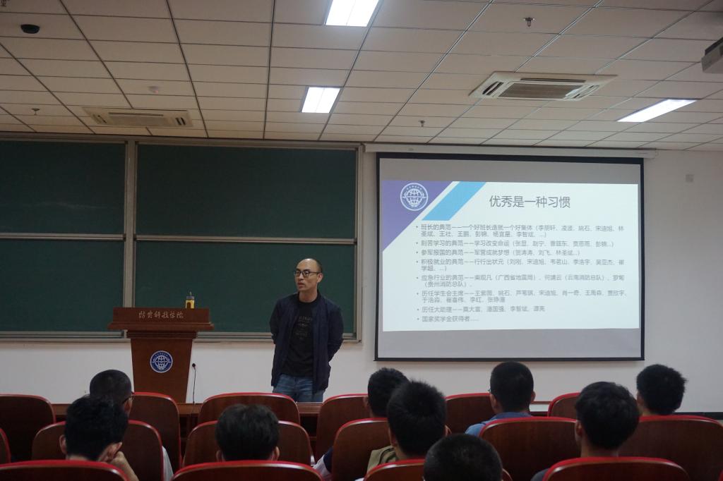 为进一步促进学风建设,用身边的榜样激发学生学习的信心和前进的动力,学院于9月25日下午在天仪楼408召开了优秀校友励志报告会。报告会由学院党总支副书记、团总支书记阎光耀主讲。