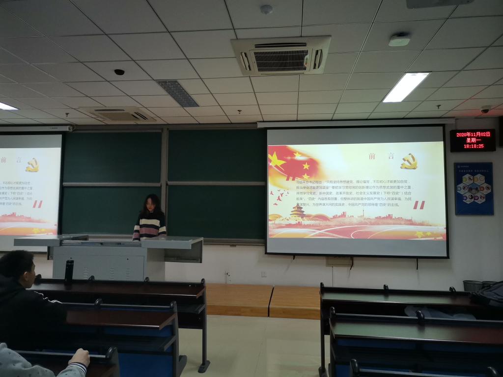 历史是最好的教科书,也是最好的清醒剂。为了贯彻习近平总书记重要讲话精神,深入开展“四史”学习,电子科学与控制工程学院党总支将入党积极分子分为八个小组组织学习并由组长安排分别于10月31日至11月5日在长庚楼420开展了“四史”故事的分享会。参加人员有各小组组员和组长。
