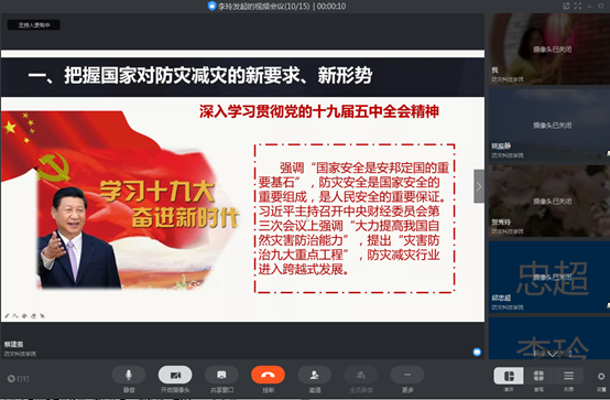 11月26日晚18:00-19:00,电子科学与控制工程学院党总支理论学习中心组于钉钉线上开展专题研讨,学院党总支委员、各教研室主任、各支部书记、两办人员、教学秘书参加会议。院长蔡建羡做“把握行业特色,做实学科建设工作”主题汇报。