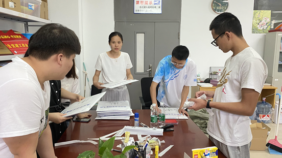 为更好发挥学生党员的先锋模范作用,强化学生党员为人民服务的宗旨意识,电子科学与控制工程学院在校生党员于2021年7月2日下午14:00在长庚楼412学生工作办公室帮助学长学姐封装毕业生档案。