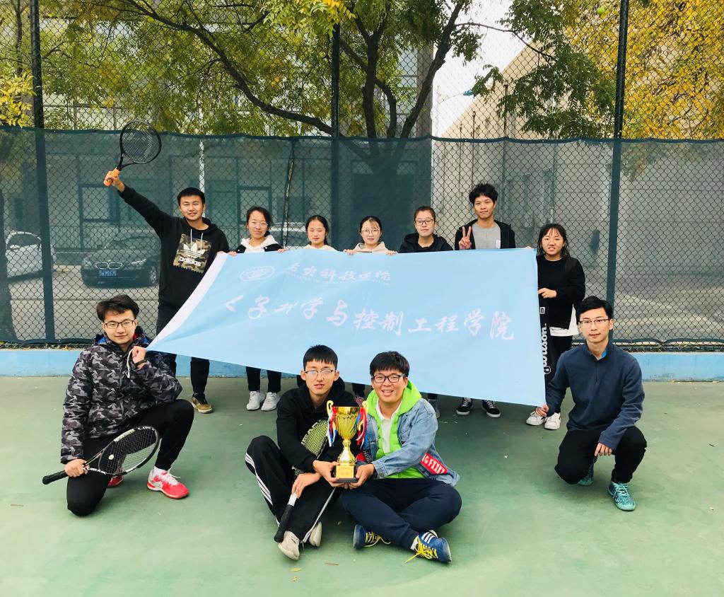 体育联盟网球队,作为我院参赛代表队,经过长时间准备、辛苦训练,蓄势待发。第一天依靠着老生的默契配合,新生的出色表现,我院代表队以小组第一的战绩一跃出线,第二天我院轻松打入决赛,在决赛中为全场观众带来了一场精彩绝伦的比赛,我院学子秉着“向上向善,大气担当”的电控精神,最终以冠军的优异成绩撰写了本次团体赛的动人篇章。