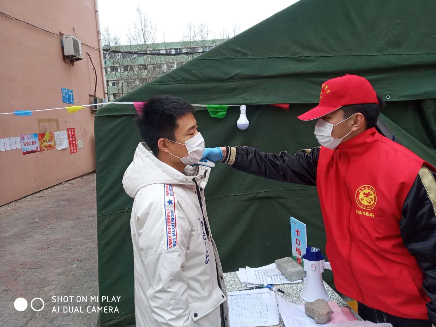 “每个人至少要做好个人防护并每日进行体温测量,不能为国家添乱。” 面对所在社区开展防疫工作人手不足的情况190511班葛天逸同学积极加入,参与防疫工作之中:对进出社区的每一个人进行体温测量工,不遗漏任何一个。看似简单的任务他一心一意的去做,落实到每一个人身上。他说:“我逐渐体会到了自己肩负的责任。做一名防疫志愿者,是我应该尽到的责任,更是我对帮助社会出的微薄的一份力,让我更开心的是有不少人和我一样,都在为守护自己的家园贡献力量。我们一定会胜利!”(图1