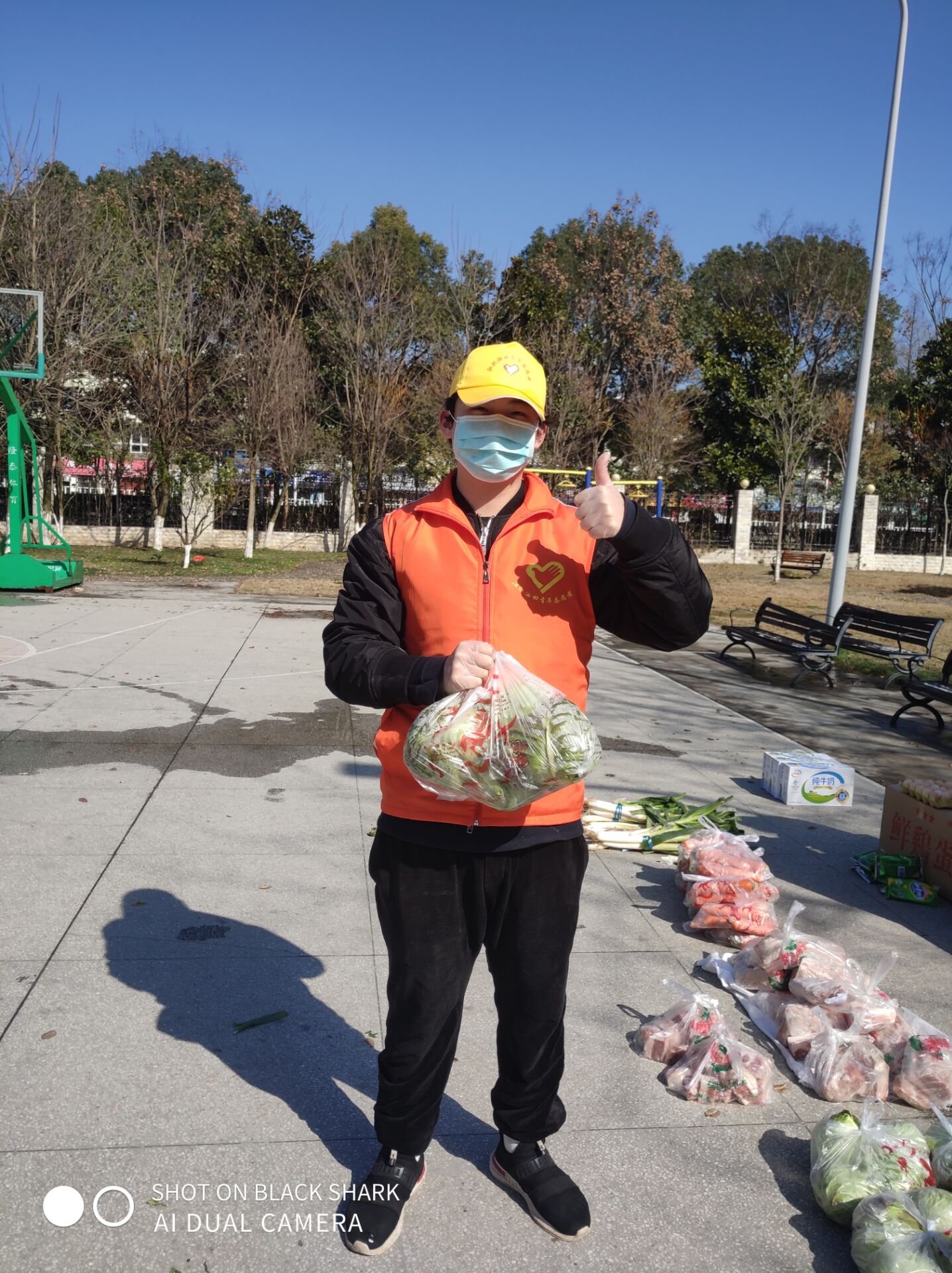 在参加湖北省潜江市青年抗疫志愿者活动时,看到潜江市需要青年志愿者,180512班杨辰烨同学便毫不犹豫的加入其中。“在疫情如此严重的时候,作为当代新青年,我觉得自己应该出一份力、做一些事,尽管不能像一线的医护人员和军人一样,但也可以为防疫工作贡献出属于自己的力量!”这是他的朴实真挚初的初心。对蔬菜肉类等物资称重分配、对疑似病例所在居民楼进行消毒、对疫情期间在家的空巢老人进行问候、帮助社区的居民购买药品等生活物资、每天在社区中进行防疫宣传,他的生活忙碌但充实:“我感觉我和许许多多的志愿者一样,尽管大家来自不同的城市,但为了防疫工作贡献力量的心是一样的,正如鲁迅先生所说:‘能做事的做事,能发声的发声。’在这一刻,我感觉我和战斗在医院的医护人员,奋力建设火神山雷神山的工人,运送物资的军人是站在一起的!大家一起努力,一起奉献,我们一起会取得胜利!”(图56