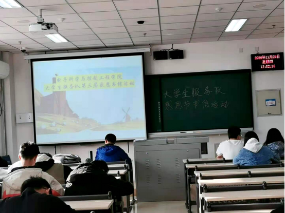 本着“知恩于心,感恩于行”的初衷,践行“不忘传统,诉情以笔”的价值观。电子科学与控制工程学院大学生服务队于2020年11月26日下午2点在天仪楼609举行“纸短情长,道不完感恩情丝”书信活动。参加本次活动的有大学生服务队部长谭清元,副部长石蕾,阳雨帆,宁振文,服务队全体干事及其报名本次活动的全体成员。(图一)