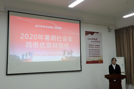 为了培养学生的创新意识,推动大学生“创新教育、实践教育”深入发展,增强学生的社会责任感和使命感。电子科学与控制工程学院于2020年10月16日晚7:00在beat365官方网站北校区长庚楼420教室举办了2020年暑期社会实践项目答辩活动,参加此次答辩活动的人员为各团队项目、个人A类项目答辩人,出席此次答辩活动的评委嘉宾为电子科学与控制工程学院第三届团总支·学生会主席团成员。