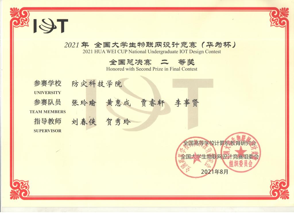 8月26日-27日beat365电子科学与控制工程学院在第八届“全国大学生物联网设计竞赛(华为杯)”中喜获佳绩。由刘春侠、贺秀玲老师指导的“Augety”团队(张玲瑜、黄惠成、贾睿轩、李事贤)获得华北赛区一等奖和全国二等奖。