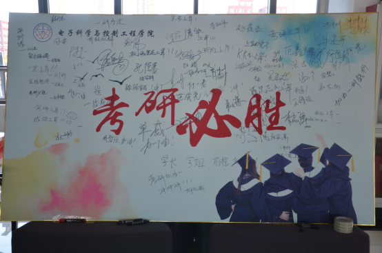 本次活动旨在鼓励我院参加考研的学长学姐们,为学长学姐们送上祝福,助力考研。通过本次活动,展现了电子科学与控制工程学院学生们“向上向善,大气担当”的品质、体现了我院同学们互帮互助、互相鼓励的优良品德。希望全体考研人顺利上岸,希望学长学姐们能心想事成、前程似锦、好事成双、无悔青春、考研必胜!(图八、九)