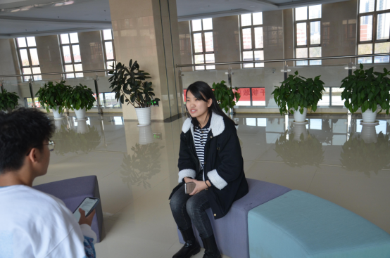 在他人眼中,她是一个性格开朗、为人正直、积极乐观的人,能够很好地团结同学完成各项任务,她积极上进,做事高效认真,深得老师和同学们的信任。(采访照)
